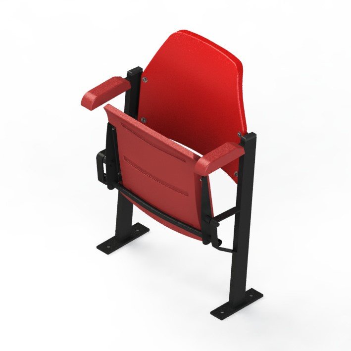 Asiento abatible por gravedad para gradas de público general y zonas VIP, recomendado para instalaciones deportivas de alto nivel por su diseño y comodidad.
